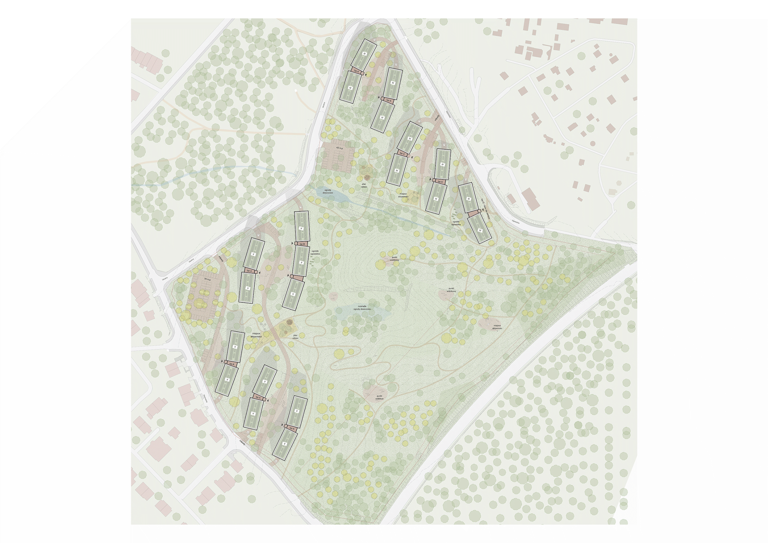 The project proposes a calm, rational residential architecture rooted directly in the conditions of the site. The development follows the natural topography and existing landscape, minimizing intervention while embracing its intrinsic potential.