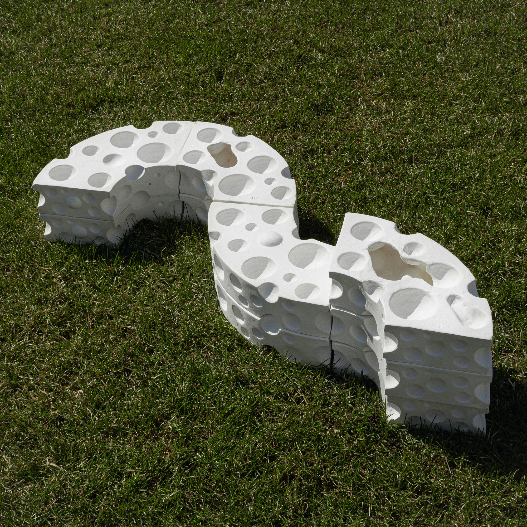The cavities in its shape invite typically unwanted life to take over the brick or the entire system as a wall. Smaller plants, fungi, and more begin to grow on it, while the holes provide homes for insects. The unglazed, pure nature of the clay helps maintain the right moisture level, serving as a seamless connection point between the brick and nature.
