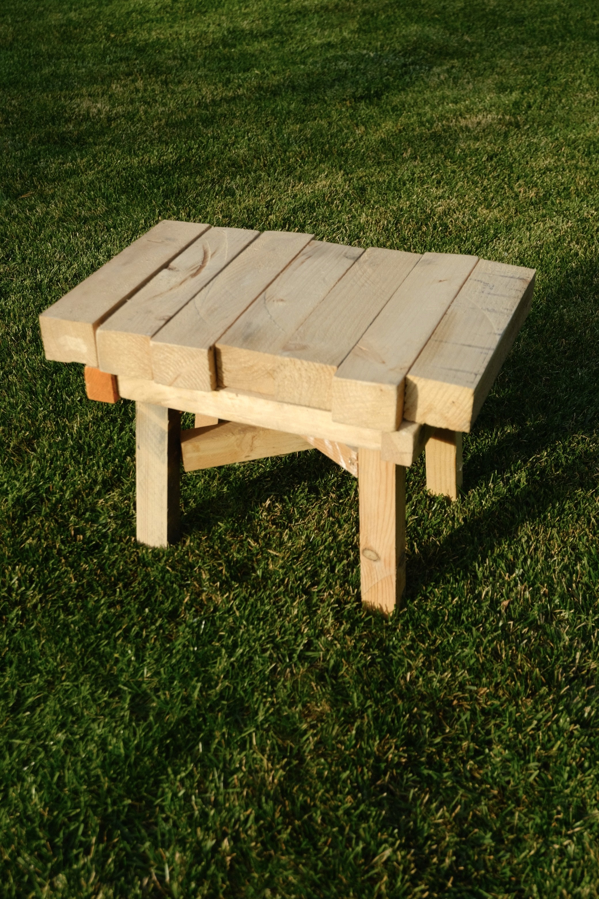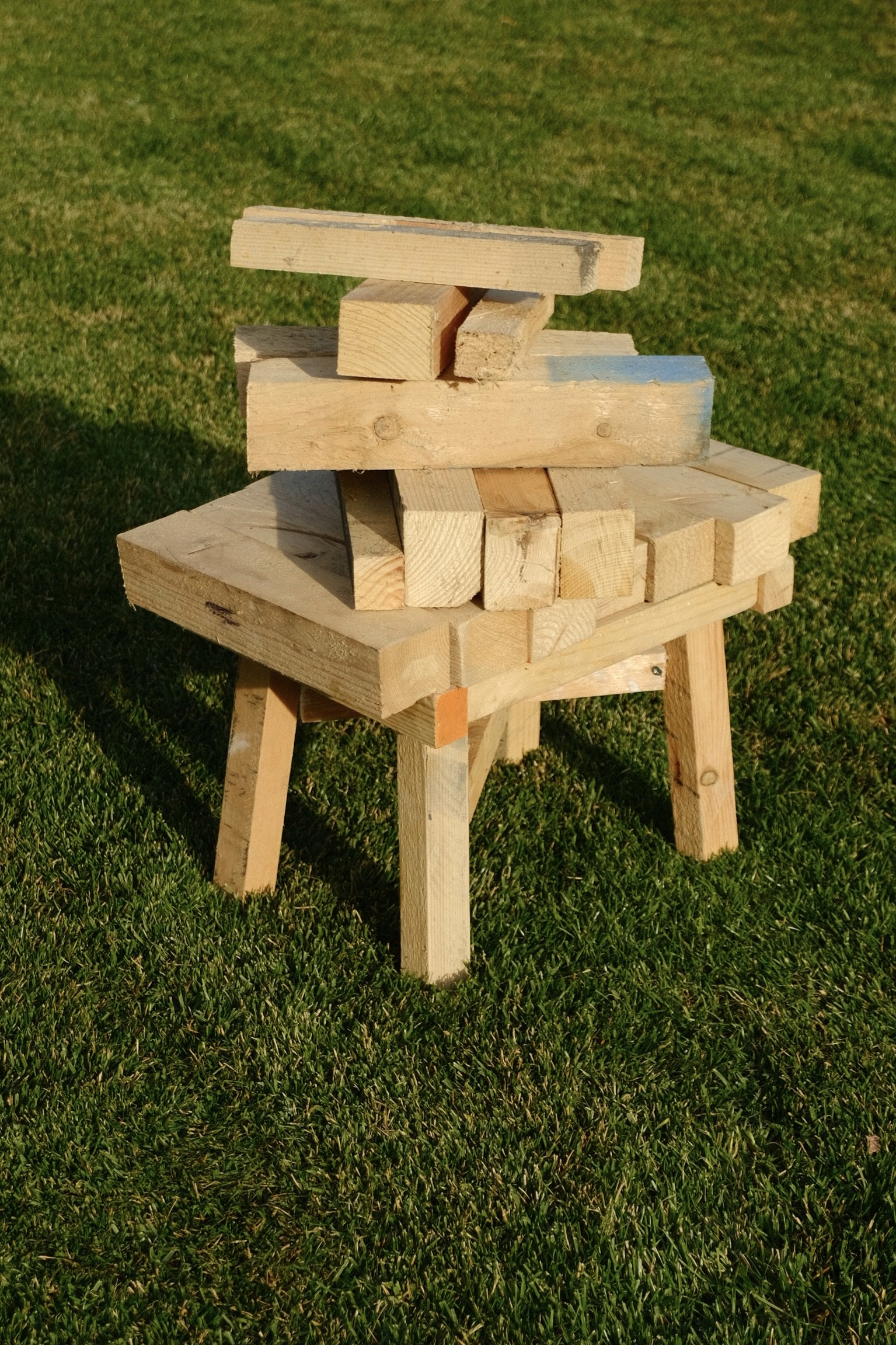This stool is a minimalist design solution, born out of the practical necessity for a simple seating option while working in the garden. Its form and materiality are inherently tied to their previous life, with wooden elements repurposed from car part shipping crates and internal separators. The components have been cut to size and assembled using screws, creating a functional and honest design object.